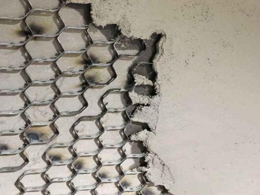 4、施工:將施工部位清理干凈,內壁不得粘有雜物浮塵。首先清理龜甲網或扒釘上面浮著物,清干凈施工工作面浮塵、雜物、然后用手工涂抹耐磨陶瓷涂料,施工部位可用鐵板等工具弄平整、光滑、接口要緊密。對于施工面積較大或厚度大于50mm以上部位要加焊錨固件,且間距不大于50mm。
