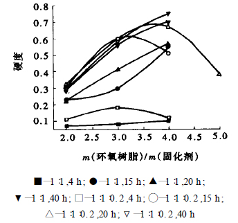 (3)硬度隨環氧樹脂與固化劑配比的變化