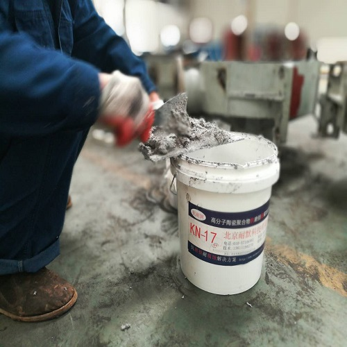2,配比KNM17耐磨防腐涂料對打磨好的金屬面修補,修補邊緣需要將KNM17耐磨防腐涂料覆蓋在原有防腐材料表面,形成釘子一樣的蓋帽。